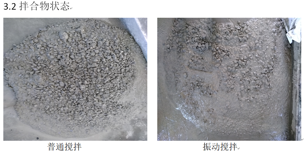 在原材料组成与配合比都相同的条件下,分别在不同日期进行了4次重复性对比试验,振动搅拌与普通强制搅拌相比,其3d龄期硬化混凝土抗压强度提高率分别为:17.09%、4.96%、9.45%、20%,7d龄期抗压强度提高率分别为:9.15%、9.26%、7.14%、23.69%。对于WFS-5标C30砼,振动搅拌与普通强制搅拌相比,其3d硬化混凝土抗压强度提高率和7d抗压强度提高率分别为4.38%和8.36%。同时,据图3、图4的曲线图可以更加直观的看出振动搅拌各龄期抗压强度均高于普通搅拌下硬化混凝土的强度,并且两次重复性试验28d龄期抗压强度提高率都不低于8.0%。由此可见,振动搅拌方式下生产的混凝土各龄期3d、7d、28d平均抗压强度均高于同条件下普通强制搅拌时的值,分析其可能的原因:在28天养护龄期内,振动搅拌混凝土的水泥水化比普通强制搅拌水化效果明显提升,有益混凝土强度形成的水化生成物增加,所以振动搅拌混凝土的3d、7d、28d抗压强度持续提高,据此强度发展变化规律可预测,若延长龄期,振动搅拌混凝土56d强度及更长龄期的强度仍会继续增长。通过重复性试验结果可以表明振动搅拌在提升硬化混凝土的力学性能方面具有较高的稳定性和可靠性。